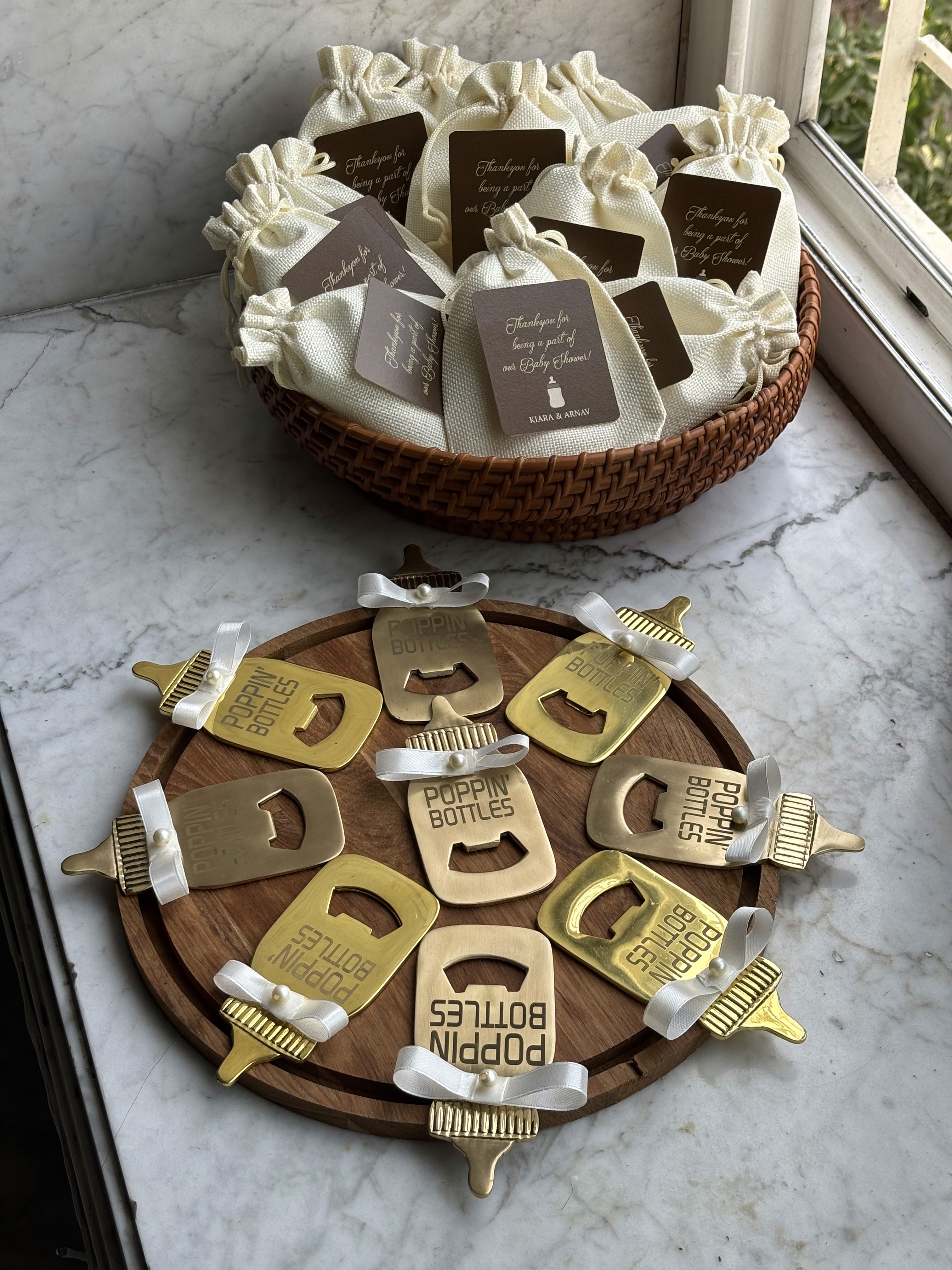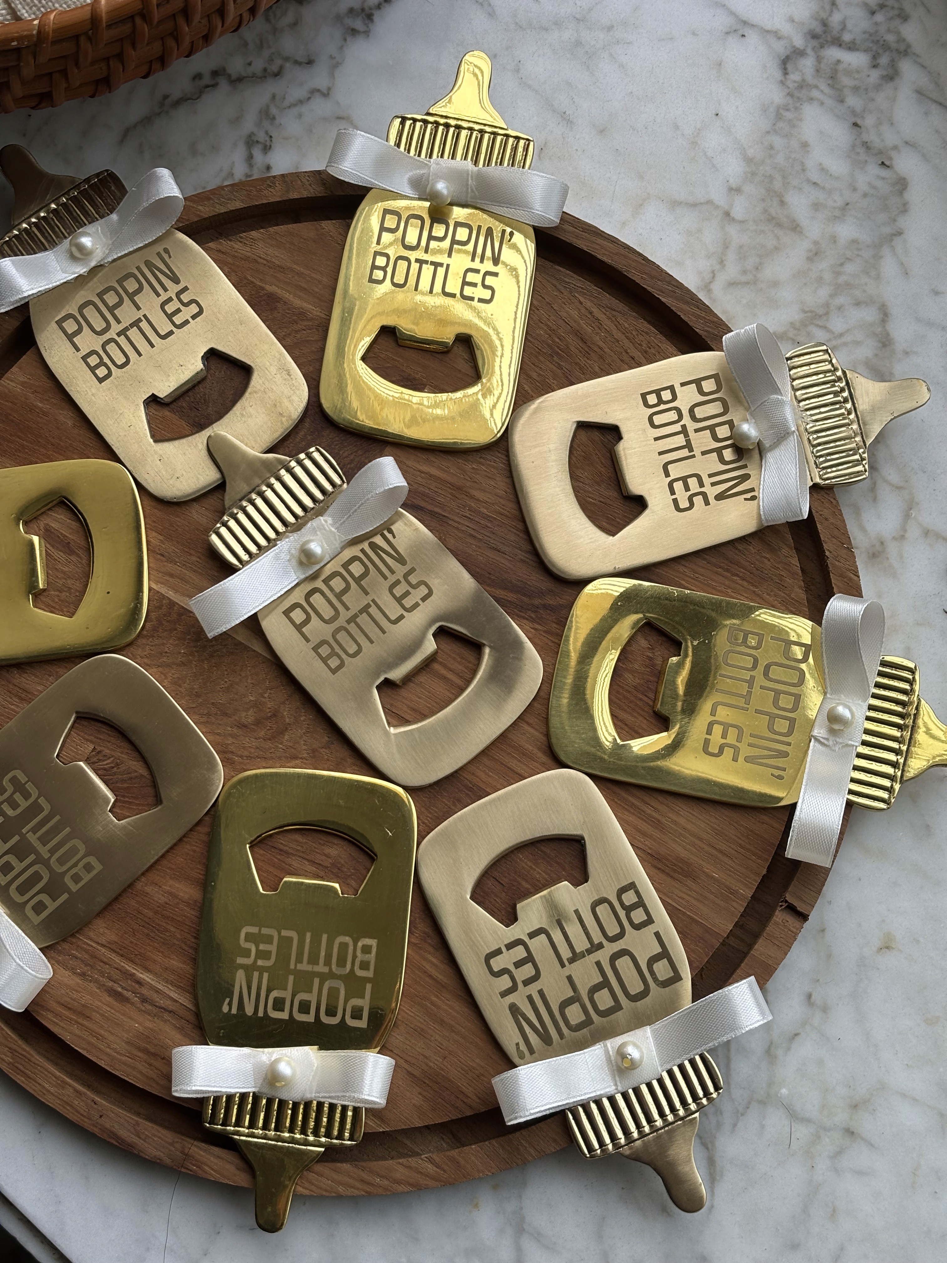 Elegant metal bottle openers shaped like baby bottles. A playful and stylish addition to baby showers or themed celebrations.